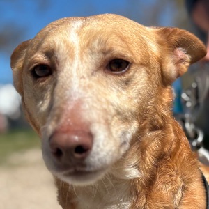 Este podenco, vivía junto a varios más atado con una cadena, en una finca. Allí pasaban los días sin atención veterinaria, mala comida y ningún cariño.