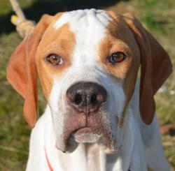 A Pusky le encontró un trabajador del CIAAM cuando iba a entrar al Centro, estaba desorientado como si estuviera buscando a su dueño, con un mordisco en una de sus patas que tenía bastante inflamada. Ahora está guapísimo, es un cachorro muy juguetón y sociable. Suponemos que el dueño sería cazador y lo abandonó porque no cazaba nada. ¡Es tan majo que se lleva bien hasta con gatos! Después de pasar varios meses en el chenil fue adoptado y el adoptante no tuvo cuidado de dejarle en un sitio acotado donde no pudiera romper cosas cuando se aburría estando solo, por lo que al final lo acabó devolviendo. Nos comentó que su hija de 4 años era capaz de sacarlo a la calle porque no tira nada de la correa y nos dijo que era el perro más encantador que habían tenido nunca, pero que cuando se quedaba solo deambulaba por toda la casa para ver con qué podía jugar Pusky es muy curioso y nadie nunca le ha explicado cuáles son sus juguetes el pobre no entiende que ha hecho mal para estar de nuevo aquí