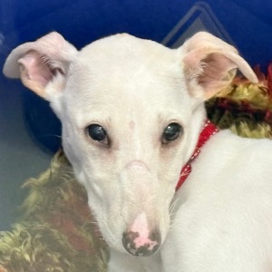 A Zelda la encontraron abandonada en el campo, es una mestiza de galgo, solo tiene 4 meses y ya la han abandonado. Triste destino de los perros de caza .