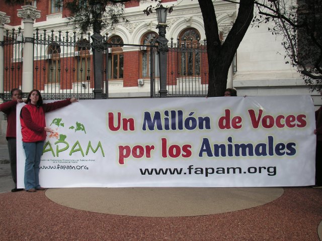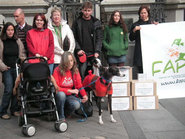 Madrid, 11 de noviembre de 2008.- Está mañana a las 12h30, La Federación de Asociaciones Protectoras y de Defensa Animal de la Comunidad de Madrid (FAPA) ha hecho entrega al Ministerio de Medio Ambiente y Medio Rural y Marino, sito en Pº. Infanta