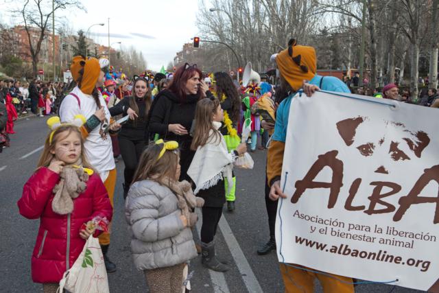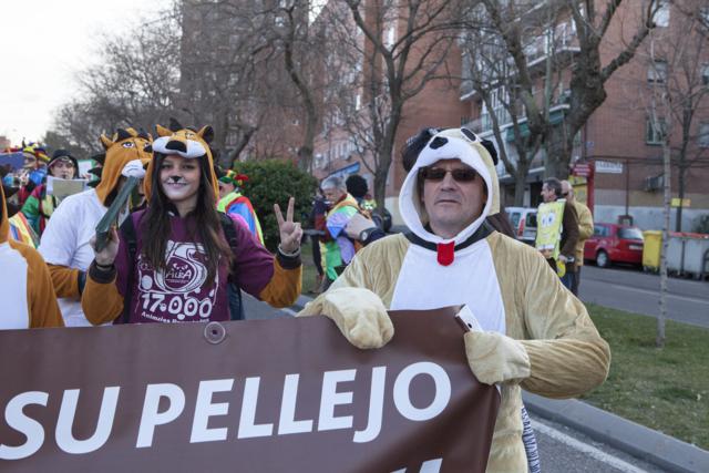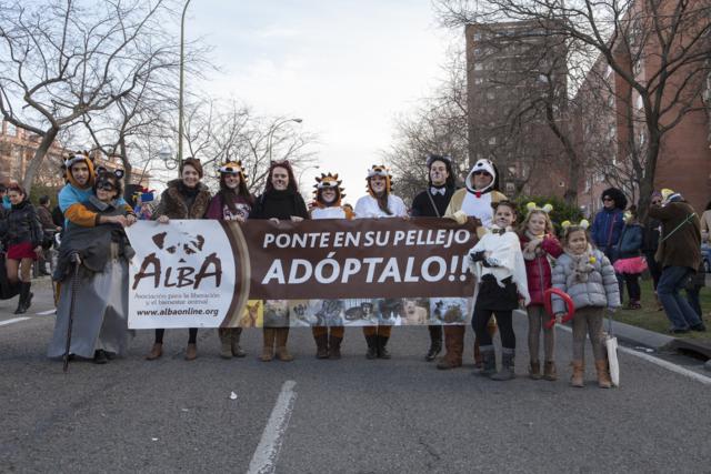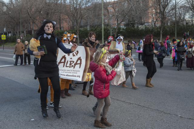 El viernes 28 de febrero dio comienzo la charanga de comparsas que desfiló por las principales arterias del barrio madrileño. Salieron de la Avenida de Buenos Aires continuando por la Avenida de la Albufera hasta llegar a la Plaza Vieja.El ambiente fue estupendo, gente cantando y riendo y aplaudiendo la labor de ALBA. Los voluntarios se disfrazaron de animales y portaron una pancarta con el lema Ponte en su pellejo, ¡ADÓPTALO!. A ellos se fueron uniendo varias personas que también se habían disfrazado de animales y que se sumaron a nuestra reivindicación.Queremos compartir con vosotros las fotos que nos hicimos y lo bien que lo pasamos así como dar las gracias a la Junta Municipal de Vallecas y a todos los vallecanos por el gran recibimiento y apoyo que nos brindaron.