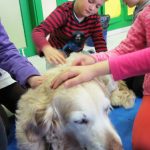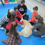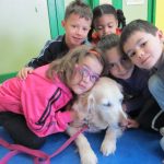 Fue una experiencia increíble, DUNA se lo pasó en grande rodeada de tantas personas que la colmaban de caricias y le decían cosas amables; las niñas y niños estaban encantados con una compi de clase tan peluda que se dejara manosear. La historia y la presencia de DUNA hicieron que los niños y niñas empatizaran con la perra de manera sorprendente haciendo que a los más mayores se nos pusieran los pelos de punta con algunos de sus comentarios.