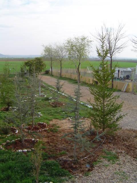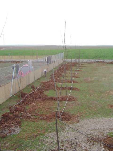 Da man bei der Madrider Regierung weiss, dass es uns nicht an Initiative fehlt, bot man uns 300 Bäume und viele Büsche aus drei verschiedenen Baumschulen für unser Tierheim an! Die einzige Bedingung war, dass bei Eintreffen der Bäume die Pflanzlöcher schon ausgeschachtet sein mussten. Das war für José ein Leichtes: ein LKW wurde gemietet und zur Verladung in die Baumschulen geschickt, ein Bagger schaufelte in dem harten, steinigen Lehmboden 300 Löcher und Akazien, Eschen, Tannen, Erlen und viele andere Bäume und Büsche bilden nun ein richtiges Gehege auf unserem bisher so kahlen Tierheimgelände. Die automatische Bewässerung ist auch schon gelegt und wir können uns glücklich schätzen, dass wir über einen eigenen Brunnen verfügen. Bitte drückt uns die Daumen, dass alle Bäume anwachsen und bald die ersten Triebe aus den noch kahlen Stämmen spriessen!