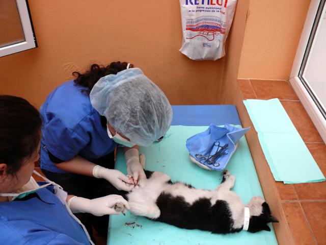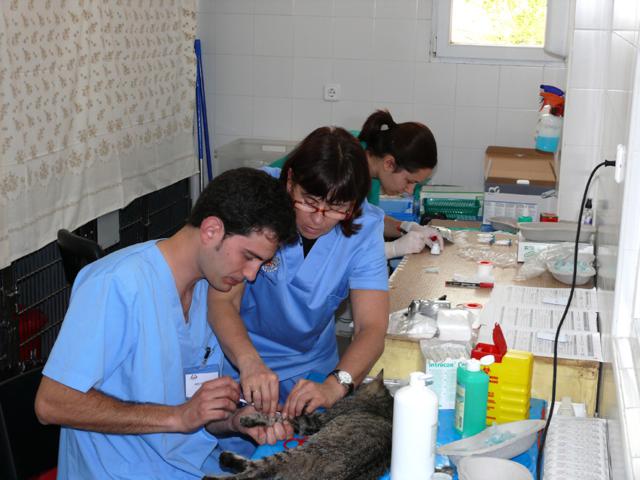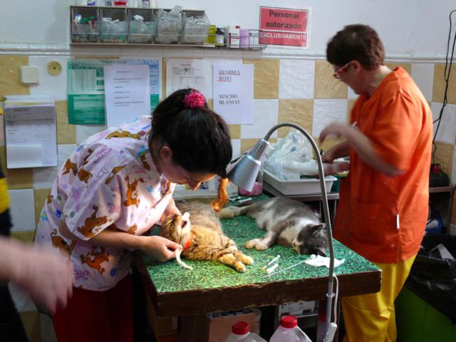 Es wurden 143 Tiere kontrolliert, davon 81 Katzen und 53 Kater; insgesamt wurden 115 Tiere aus 40 verschiedenen Kolonien kostenlos kastriert. Dank der selbstlosen Mithilfe von rund einem Dutzend Tierärzten und anderen vielen Helfen, die für diese hervorragende Sache auf ihren freien Tag verzichtet haben, konnte diese Aktion stattfinden. Zudem haben verschiedenste Firmen durch Spenden oder Leihgaben von diversem Material mitgewirkt. Unser Tierheim besitzt einen OP mit Vorbereitungsraum, aber für diesen Tag haben wir unsere Katzenzimmer in perfekt ausgestattete OPs umgewandelt. So hatten wir 5 Operationstische für die Katzen und drei für die Kater zur Verfügung, dann einen Raum zur Narkoseeinleitung und für die Tests auf Katzenaids und Katzenleukämie sowie einen Aufwachraum. Die ganzen Vorbereitungen dafür wurden in den vorhergehenden Tagen durch die Ehrenamtlichen der ALBA durchgeführt. Um die Wartezeit ein wenig angenehmer zu gestalten und auch die Kasse zu füllen, wurde ein Zelt aufgestellt, in dem Getränke und eine saftige Paella verkauft wurden. Auch wurden verschiedene Aktivitäten angeboten, so z.B. Handarbeiten, Mauer bemalen, es gab eine Tombola, einen Flohmarkt sowie eine Direktübertragung, damit man bei Interesse mitbekam, was in den OPs vor sich ging. Am Nachmittag zog zwar starker Regen auf, aber wir konnten alle geplanten Kastrationen durchführen und die Tiere den „Einfängern“ übergeben, damit sie in ihren Kolonien wieder freigelassen werden konnten. Diese Kastrationsaktion hat sich mittlerweile zu einer festen Institution entwickelt und wir hoffen sie in den folgenden Jahren weiterhin durchführen zu können. VIELEN DANK AN ALLE DIE MITGEHOLFEN HABEN!