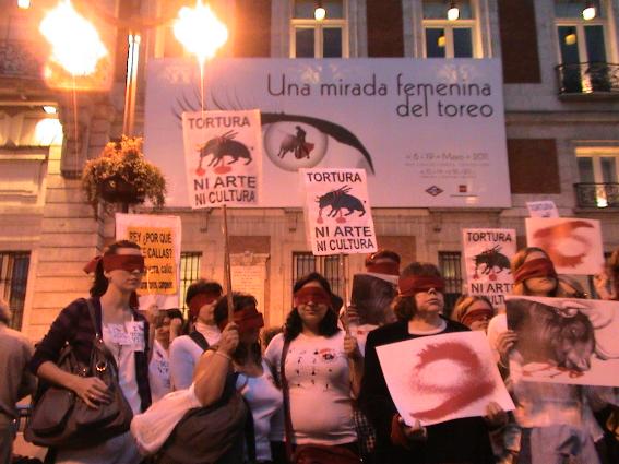 Según las convocantes, La Mirada Femenina del Toreo es una exhibición que, Esperanza Aguirre paga con el dinero de los madrileños, gracias a su declaración de la tauromaquia como Bien de Interés Cultural. En ella quiere reivindicar el papel de la mujer en la tauromaquia, algo paradójico, en un mundo que siempre se ha distinguido por su machismo recalcitrante. A la protesta se sumaron numerosos participantes del movimiento 15 M.