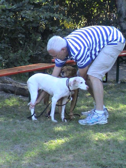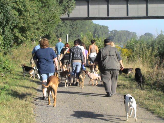 Un grupo de voluntarios de ALBA viajó el pasado fin de semana del 7 al 9 de Septiembre para asistir a La fiesta de ALBA en Alemania. El sábado pasamos el día en una finca de campo muy agradable en la cual, tanto los perros como nosotros, pudimos disfrutar de un bonito y agradable día de verano. Durante todo el día estuvieron llegando familias adoptivas de más de 80 perros de ALBA que han viajado a Alemania a lo largo de estos años para pasar a formar parte de sus familias. Fue muy gratificante ver como animales tan miedosos como Libertad, Tilde, Tracia, etc habían perdido completamente el miedo y habían pasado a ser perros muy felices, integrados y sociables. Se notaba perfectamente el buen trato que están recibiendo en sus nuevas casas. El domingo pudimos disfrutar de un agradable paseo a las orillas del Rhin con más de 40 perros que llegaron, algún día, a nuestro albergue llevando a sus espaldas un pasado de malos tratos y sufrimiento. Sus familias alemanas han conseguido hacerles olvidar ese pasado tan duro y están consiguiendo que recuperen esa vida feliz a la que todos tienen derecho. Nuestro agradecimiento al grupo de Manuela HUNDEHILFE PFALZ que ha hecho que este cuento de hadas haya sido posible.