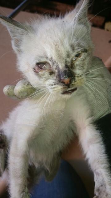Entonces pidió ayuda a la gente de ALBA y además la ayuda tenía que ser urgente ya que el dueño de la empresa, no quería gente por allí merodeando y le importaba poco o nada que muriésemos de hambre dentro de la alcantarilla. A la mañana siguiente volvieron Javier de Madrid Felina y Juan de ALBA. Juan iba preparado con su kit de rescates y sabía cómo actuar. En menos de 30 minutos nos habían sacado a una de la alcantarilla y a la otra de debajo de un palé muerta de miedo y con los ojos fatal. Juan corrió a la clínica veterinaria para que nos asistieran de urgencias. Desde entonces vivimos en casa de Juan de ALBA pero el ya tiene muchos gatos rescatados de la calle y no para de rescatar más por lo que necesita ayuda. La asociación ALBA se está haciendo cargo de todos nuestros gastos. Necesitamos ayuda económica para pagar nuestros gastos, casa de acogida porque donde estamos ya somos muchos, o una familia adoptiva que a ser posible nos adopte a las dos juntitas. Nos puedes ayudar?
