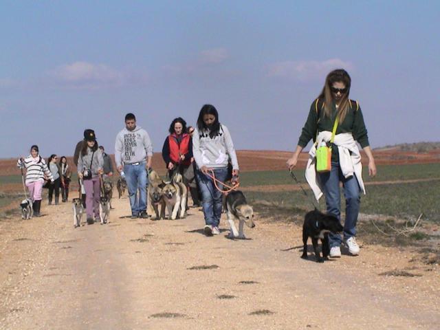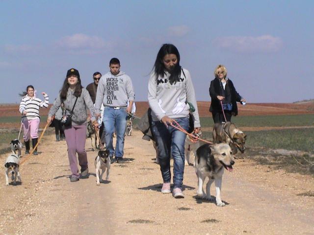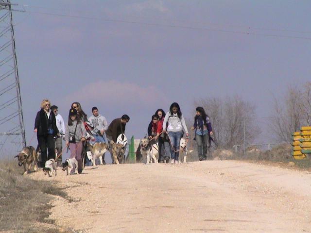 La Asociación ALBA ha salido al campo, hoy domingo 19 de Febrero, con los animales de su albergue. Con esta iniciativa pretende socializar a sus animales para facilitar su posterior adopción. Después de recargar energías desayunando churros en el albergue, los voluntarios han estado andando más de 6 kilómetros durante unas 3 horas. Además de poder disfrutar del buen día que ha hecho y de ver otros animales salvajes que suelen vivir en el campo, han podido ayudar a los más de 26 canes que han salido a pasear. Se ha trabajado con ellos para que aprendan a no tirar con la correa, a superar el miedo a otros animales o a las personas e incluso que aprendan a convivir con otros perros sin pelearse. La experiencia ha sido muy gratificante y hemos prometido repetir muy pronto. Nuestros 26 angelitos se quedaron durmiendo tranquilamente en sus cheniles y soñando con el fabuloso paseo que acababan de darse con sus amigos de ALBA. Lista de los afortunados: CROQUETA, PUCHARE, CERCEDO, NELO TOLEDO, SAIPAL, MONTBLANCA, CARRACA, PETENERA, HUMMER, FUKUSHIMA, SAPPORO, MARINA LORCA, KING KONG, ZARZUELO, CHISTU, PAQUI ECI, MAZAPANA, ABULENSE, AIDA ECI, CARLITOS ECI, CUKI ECI, JABATO ECI, MANCHITAS ECI, SOLE ECI, MARISMA Y GUAJIRA