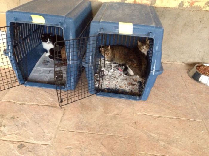 Carolina, nuestra presi, llamó a una compañera de la SPAP que es abogada para ver si podíamos hacer algo. Tras muchas gestiones consiguió que dejaran pasar a cinco personas entre las cuales estaban dos de ALBA y la abogada Arancha de la SPAP. Podían entrar a las 6 de la tarde, a las 12 de la noche y a las 4 de la mañana para intentar sacar a más gatos. Hubo suerte y ALBA ha salvado a 26 de los 32 gatos que había. Hemos estado yendo varios días y dejando jaulas trampa para coger a los que pudiéramos. Ha sido un trabajo complicado pero ha merecido la pena porque estos 26 angelotes están a salvo. Pero ahora llega la segunda parte.