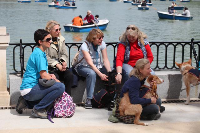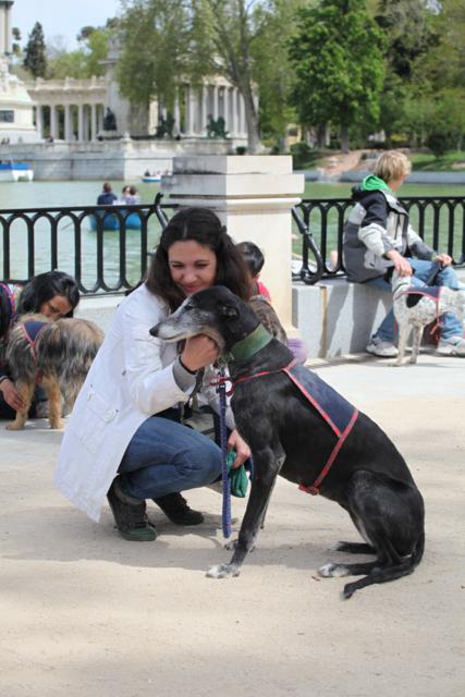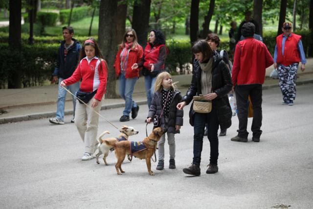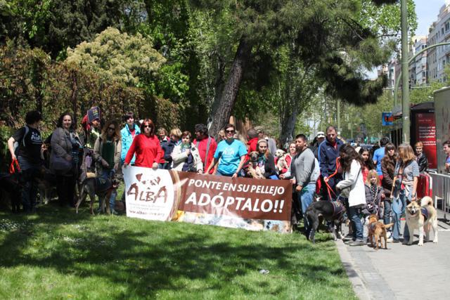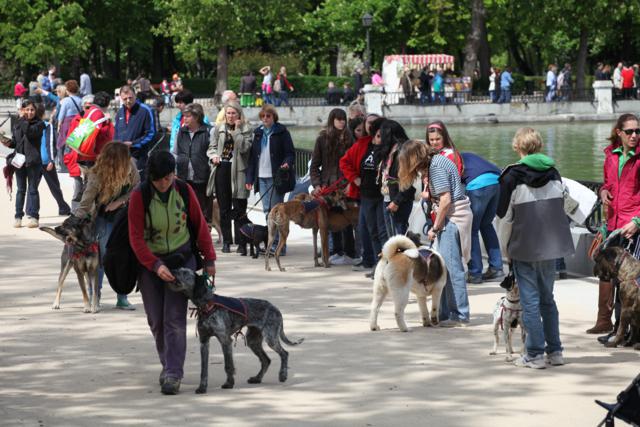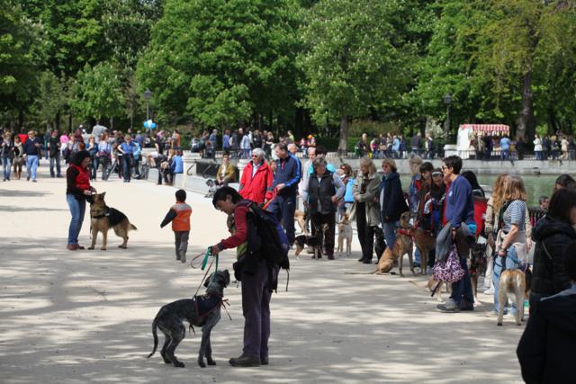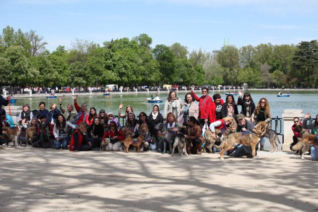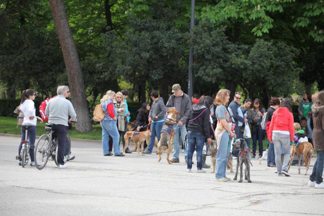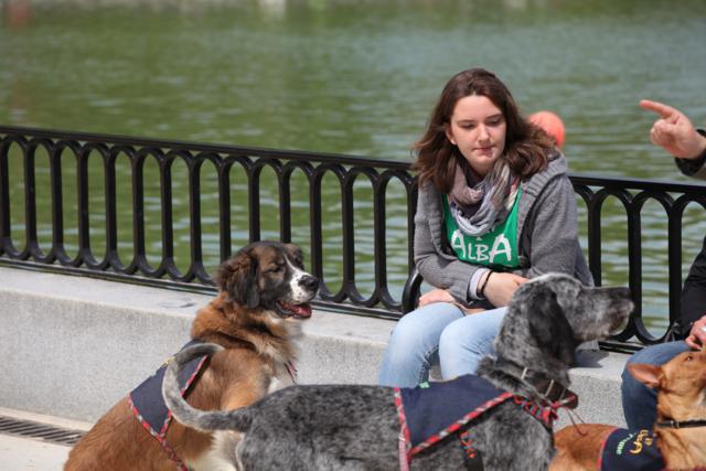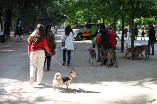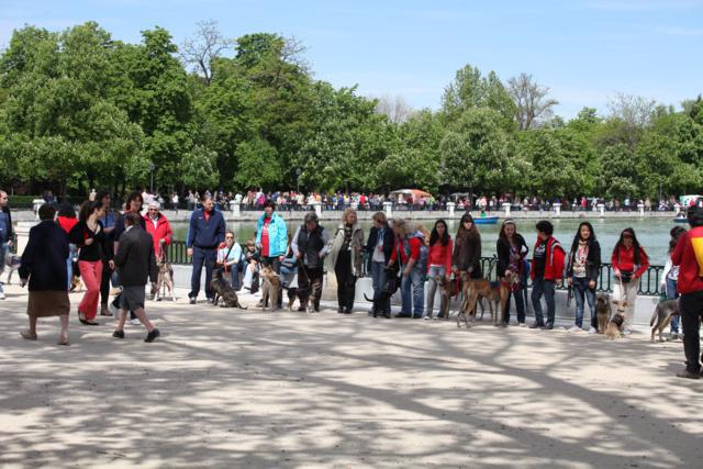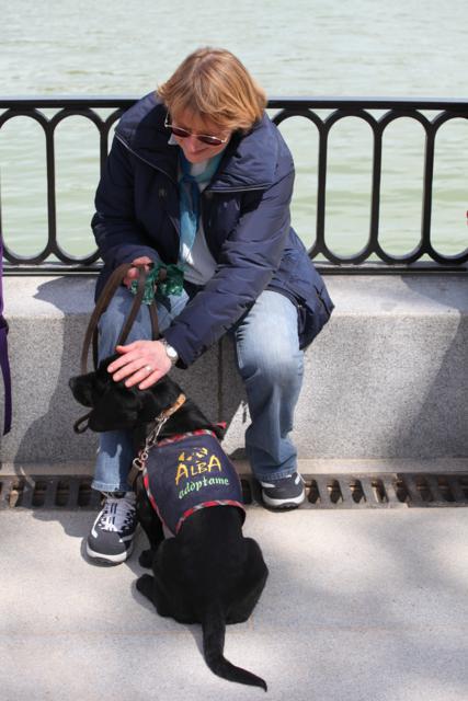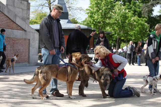 Los perros de ALBA han vuelto a salir de excursión para buscar adoptantes, provistos de unos bonitos dorsales con el lema adóptame han paseado el domingo 22 por el parque de El Retiro de Madrid. En esta ocasión además de los pasea-perros voluntarios y las educadoras, han ido acompañados por un grupo de colaboradores alemanes, pertenecientes a una organización que busca familias para ellos en su país.Fué un día complicado porque se celebraba la maratón y la afluencia de público era tremenda. A pesar de todo los perros se portaron estupendamente y no tuvieron miedo de verse rodeados de tanta gente.Durante el paseo muchas personas se acercaron a interesarse por ellos y por el trabajo que ALBA realiza en la atención de estos perros sin hogar.Esta experiencia está siendo muy positiva tanto para la sociabilización de nuestros perros como para dar a conocer el problema del abandono.Estamos seguros de que es un buen camino para conseguir adopciones y repetiremos pronto el paseo…..Gracias a todos los que colaboraron con nosotros.