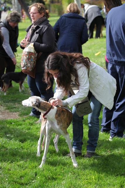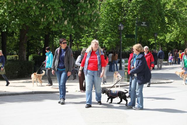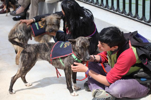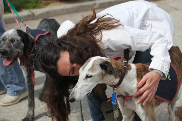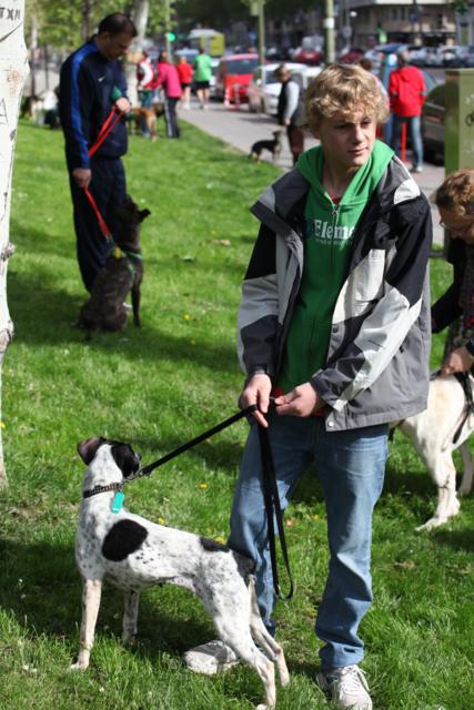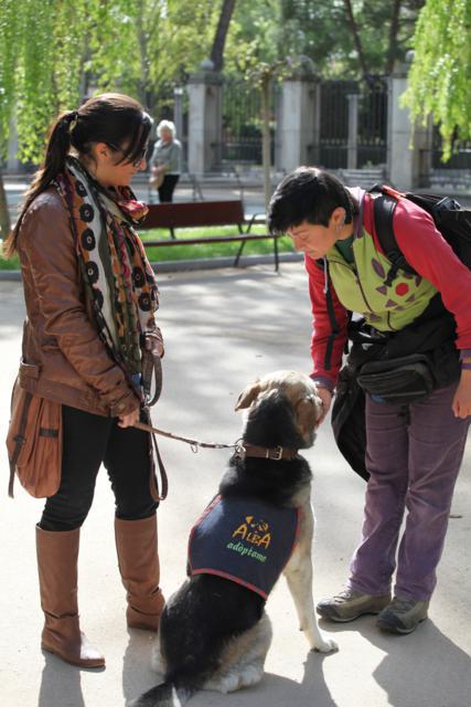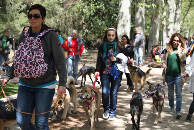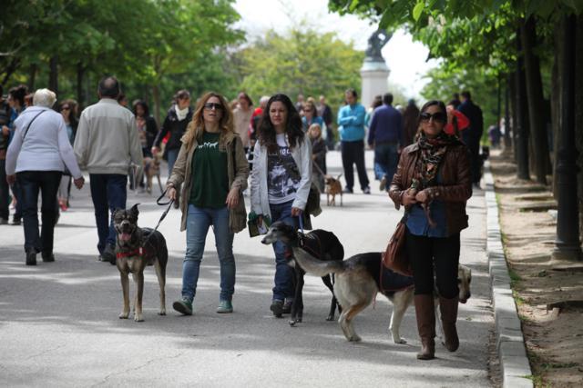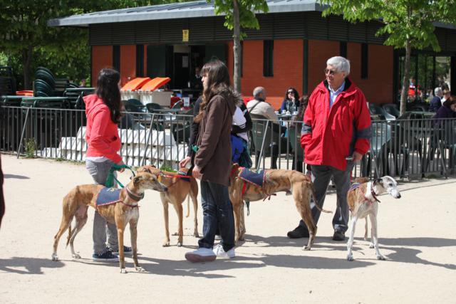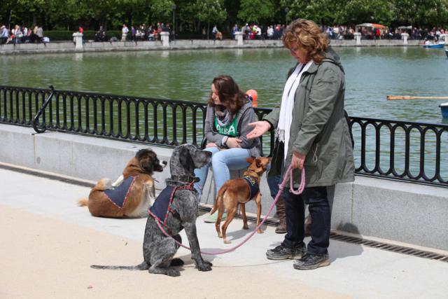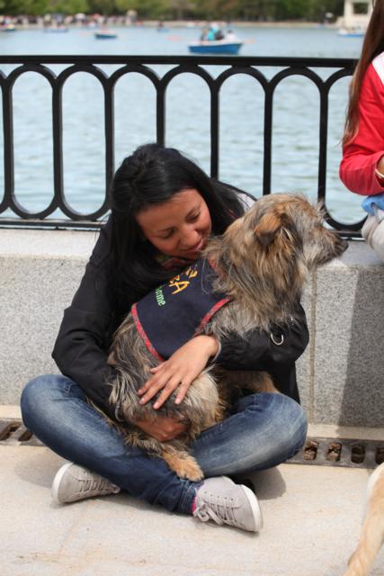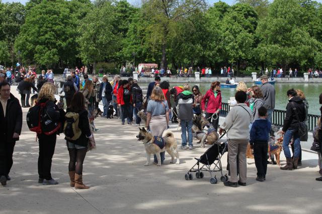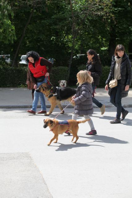 Los perros de ALBA han vuelto a salir de excursión para buscar adoptantes, provistos de unos bonitos dorsales con el lema adóptame han paseado el domingo 22 por el parque de El Retiro de Madrid. En esta ocasión además de los pasea-perros voluntarios y las educadoras, han ido acompañados por un grupo de colaboradores alemanes, pertenecientes a una organización que busca familias para ellos en su país.Fué un día complicado porque se celebraba la maratón y la afluencia de público era tremenda. A pesar de todo los perros se portaron estupendamente y no tuvieron miedo de verse rodeados de tanta gente.Durante el paseo muchas personas se acercaron a interesarse por ellos y por el trabajo que ALBA realiza en la atención de estos perros sin hogar.Esta experiencia está siendo muy positiva tanto para la sociabilización de nuestros perros como para dar a conocer el problema del abandono.Estamos seguros de que es un buen camino para conseguir adopciones y repetiremos pronto el paseo…..Gracias a todos los que colaboraron con nosotros.