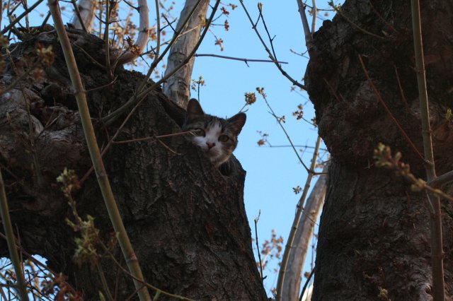 Una señora, que presenta una minusvalía y necesita ayuda para salir a la calle, nos cuenta que desde su balcón ve todos los días como una gata ha parido en un agujero del tronco de un gran árbol. Nos acercamos al lugar donde nos indica que se encuentra el árbol con los gatos y vemos que necesitamos ayuda de un par de escaleras muy largas para poder acceder a ellos. Nos ponemos manos a la obra para buscar el material necesario y nos acercamos esa misma tarde a la zona de San Blas-Canillejas, para rescatar a la mamá gata y sus dos gatitos. No fué una tarea fácil ya que, aunque la mamá se dejaba tocar con facilidad, los hijos estaban muy asustados e intentaron subir a lo más alto del árbol en su intento de huir de nosotros. Menos mal que contábamos con las manos expertas de José y Antonio que con mucho cuidado consiguieron rescatar a los tres gatos sanos y salvos. Les hemos bautizado con el nombre de ALONDRA, a la madre, y ESTORNINO Y CHORLITO a sus dos hijos que ahora esperan una familia que les adopte.
