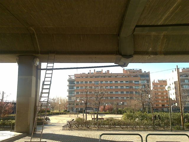 Unos vecinos avisan a Juan de que hay una gata en un canalón bajo un puente de autovía. Seguramente ha caido por una junta de dilatación, tras ser atropellada, y se ha refugiado allí sin ninguna posibilidad de escape. Primero intenta el rescate poniendo una escalera encima de una furgoneta y con grave riesgo consigue acercarse a la gata, observa que está famélica y con una pata rota, la gata se asusta y escapa más lejos….Ahora ya es imposible alcanzarla, pero Juan no se rinde y llama a los bomberos, al principio reacios porque ya lo habían intentado sin éxito por la mañana. Les explica que es de ALBA y como en otras ocasiones se prestan a la ayuda.